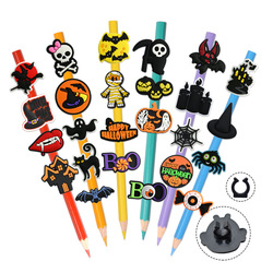 Venda quente Série Estudante Pen Clip Halloween Fácil de Remover Borracha Macia PVC Decorativa Pen Topper Acessório Lápis Cap Topper